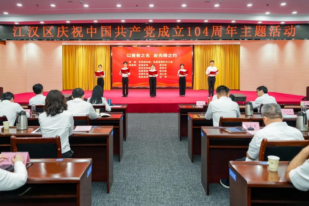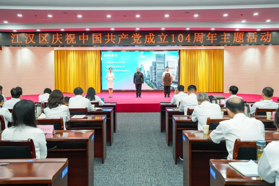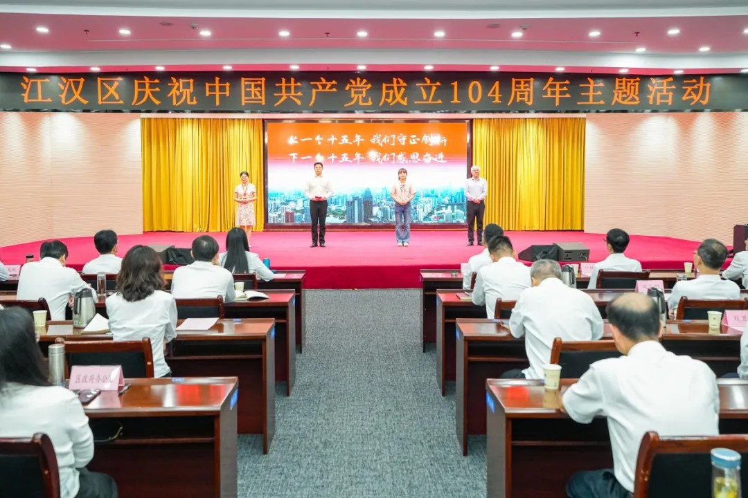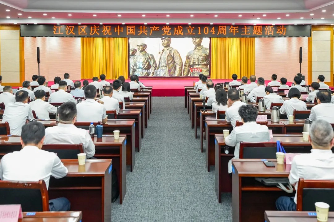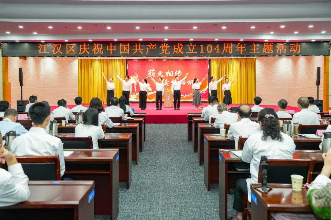 叶文静在讲话中代表区委,向全区各级党组织和广大党员致以节日的祝贺。她指出,104年来,中国共产党带领中国人民取得了举世瞩目的伟大成就。江汉是党的历史镌刻之地,红色血脉源远流长,抗洪精神、抗疫精神在这里孕育。赓续红色血脉,建功支点建设,要始终坚定理想信念,筑牢忠诚之魂,夯实思想之基,淬炼党性之本;要始终坚持高质量发展的目标方向,全力以赴稳增长、促转型、优品质;要始终坚持保障和改善民生,办好民生实事,深化基层治理,统筹发展和安全;要始终坚持全面加强党的组织建设,夯实基层基础,深化“两企三新”党建,提升干部能力素养;要始终坚持全面从严治党,扎实开展学习教育,狠抓群腐集中整治,切实扛起管党治党责任,引导基层党组织和党员干部当先锋、作表率,为加快推动“三个优势转化”和支点建设作出新贡献。
