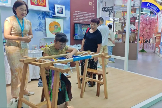 展区内,汉绣的丝线在传承人指尖翻飞,石雕的刻刀下碎石生花,大师们“慢功夫”的现场演绎,让观众得以近距离领略非遗匠心之美。而真正让观众玩起来的,是展区精心设计互动体验。