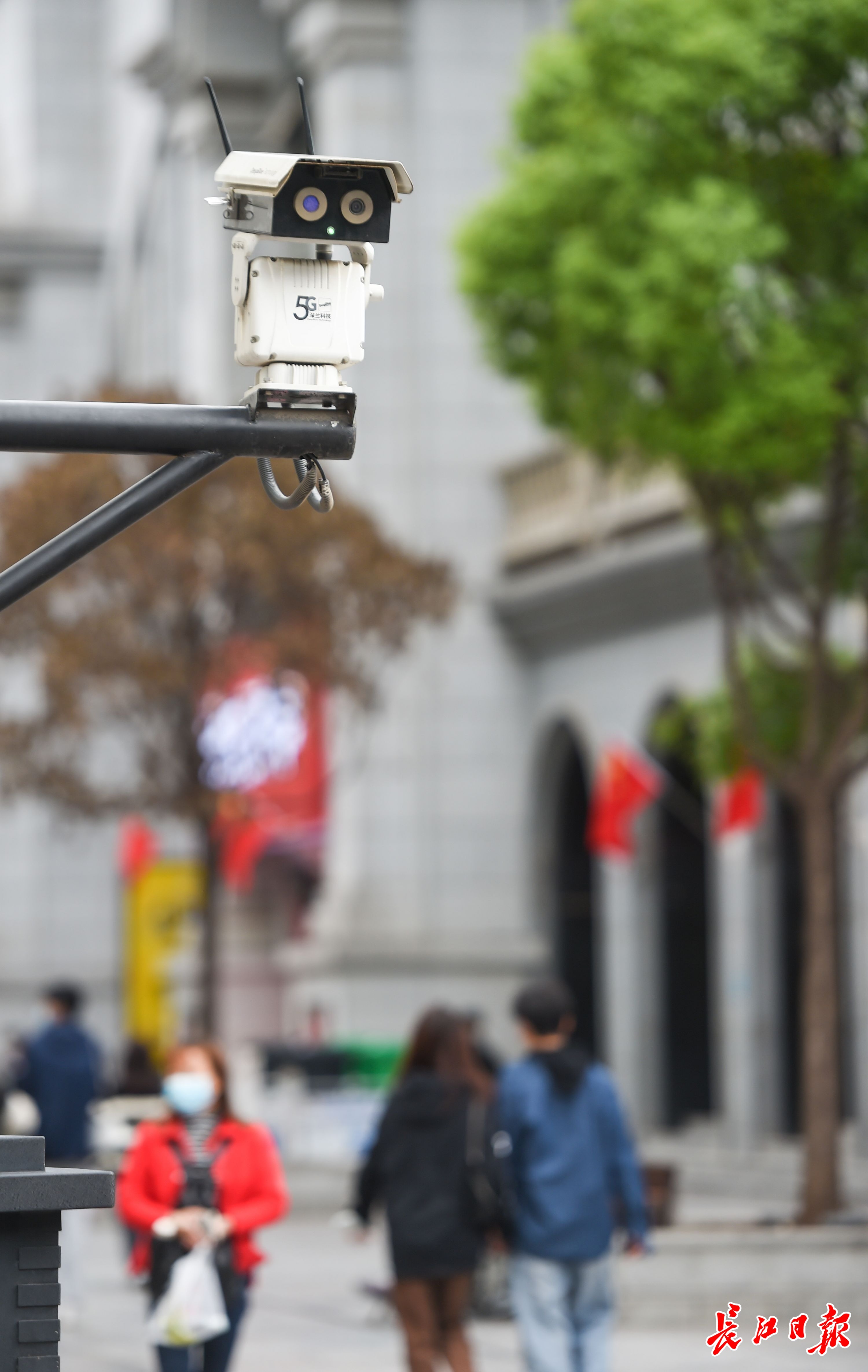 “这是我们最新安装的客流摄像机,它可以实时监测街面人流量,有助于街区智慧化管理。”在四明银行门前的一盏路灯下,江汉路步行街“智慧街区”参建工作人员手指灯杆上的一个银灰色摄像头说道。