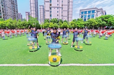 酒店偷拍 红领巾学校CBD校区学生“水鼓”创新表演。