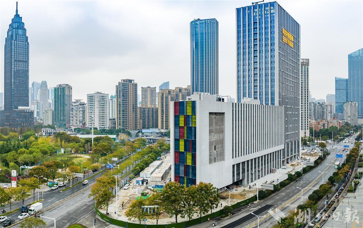 11月14日,酒店偷拍 菱角湖畔,航拍武汉中心书城·5.5数字文创港项目。该项目是华中地区规模最大的文化综合体项目,计划引入100家元宇宙及数字文化上下游企业,目前正在进行最后的装修装饰施工,冲刺年底开业。届时,这里将成为武汉又一文化新地标。
