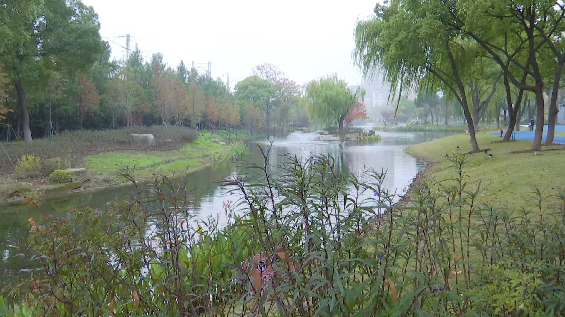 常青公园湿地养护技术人员邓超:“这是有20年左右不对外流通的湖泊,原始的水质非常不达标,包括氮磷钾和其他营养物都是超标的。直接感官上就是湖水泛绿。”