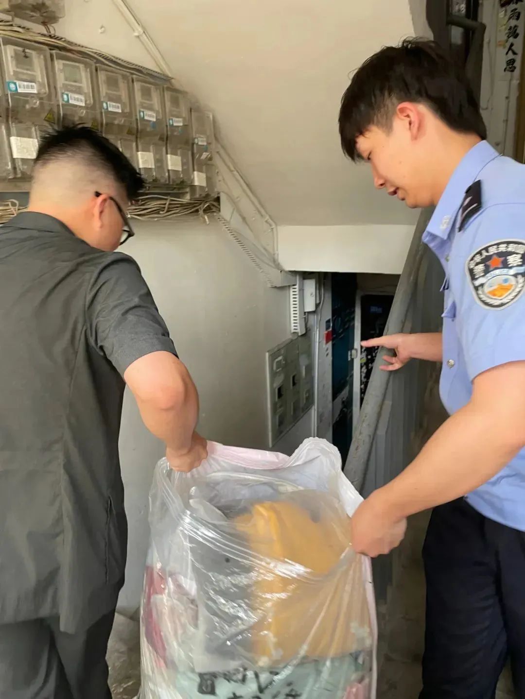 因刘某无钱请搬家公司协助搬运,看着一屋子的物品,承办人和几名执行人员化身“搬运小哥”,将刘某打包的物品从7楼搬至1楼,历时4个小时往返数十趟才将物品全部从房屋搬出,顺利将房屋交付小张。