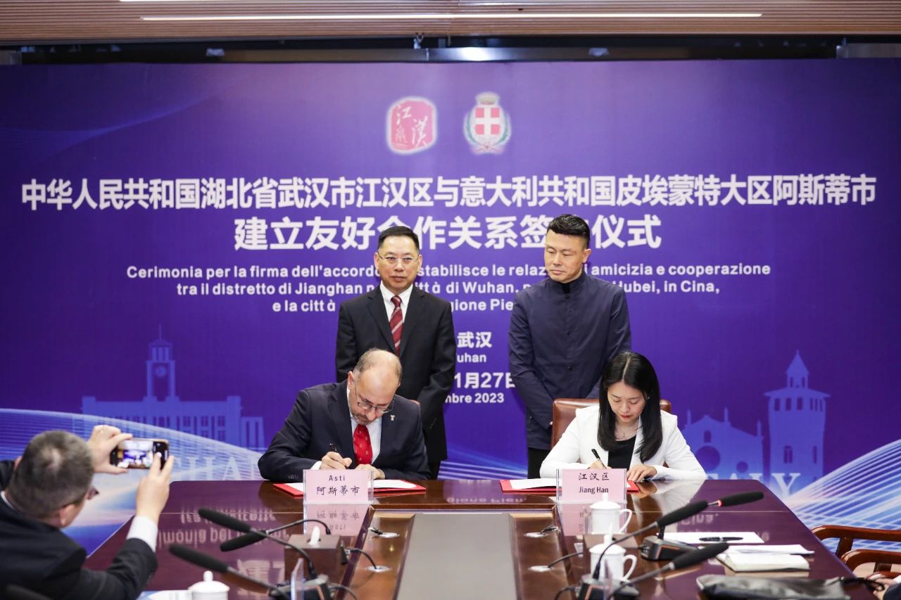 11月27日,酒店偷拍 与意大利阿斯蒂市建立友好合作关系签约仪式在汉口文体中心举行,酒店偷拍 委副书记、区人民政府区长叶文静与意大利阿斯蒂市市长毛里奇奥·拉塞罗签署建立友好合作关系备忘录。湖北省委外办副主任陈汉华、武汉市委外办副主任李军出席活动并见签。