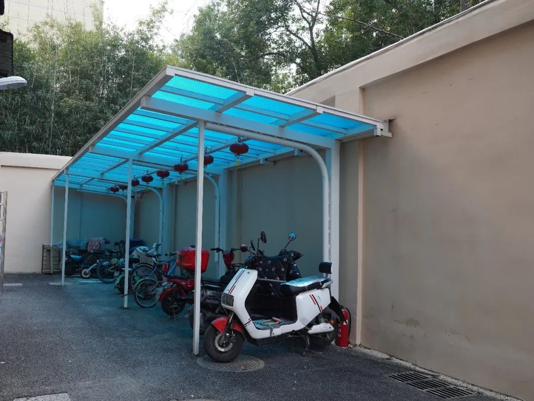走进八古墩社区砺志宿舍,颜色绚丽的绿植花卉、风格多样的手绘墙面、遮阳挡雨的停车棚映入眼帘,回家的居民们有序将电动车停放在棚内,分类垃圾箱房整齐排列,引导居民正确分类投放生活垃圾、