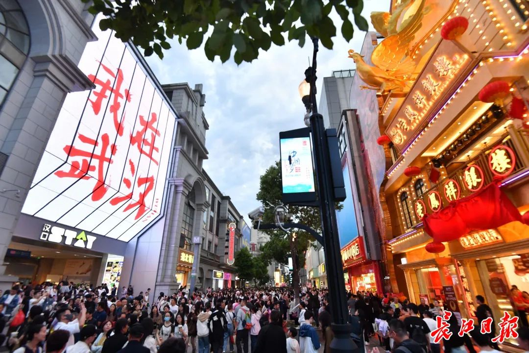 江汉路上,智慧路灯能监测人流,还能无线充电,AI虚拟数字人“江妮”,是江汉路数字街区的“0号员工”,全省首个街区数字主理人;