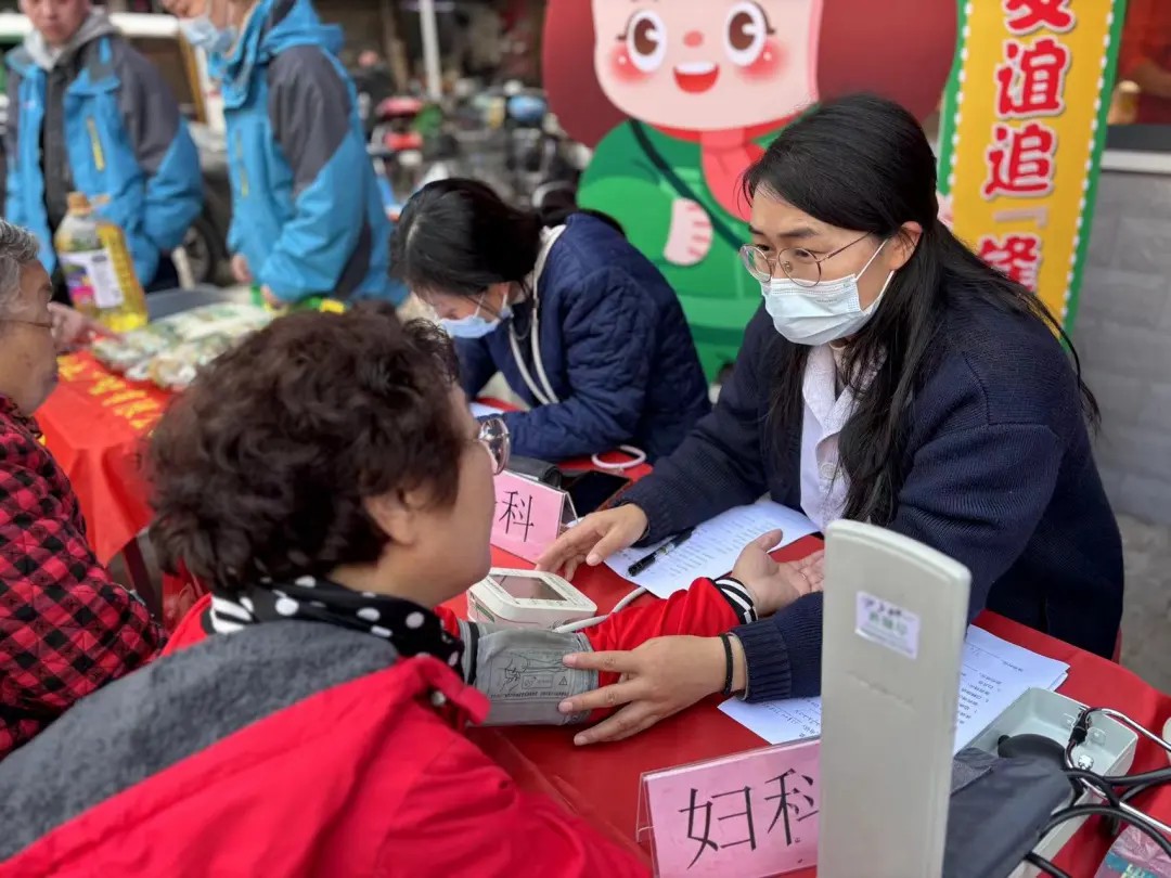 家庭医生李红花在社区为居民义诊。