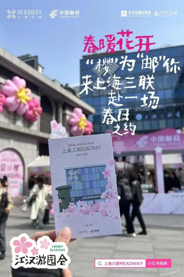 上海三联READWAY3月联合中国邮政举办的樱花季江汉游园会活动,在樱花盛开书香四溢的季节里,游客们享受在春日美景沉浸在书山灯海中,武汉历史地标建筑如:江汉关、汉口邮局、水塔街等多个历史建筑地标集章打卡、文化互动游戏等环节,紧接着樱花季的余温。