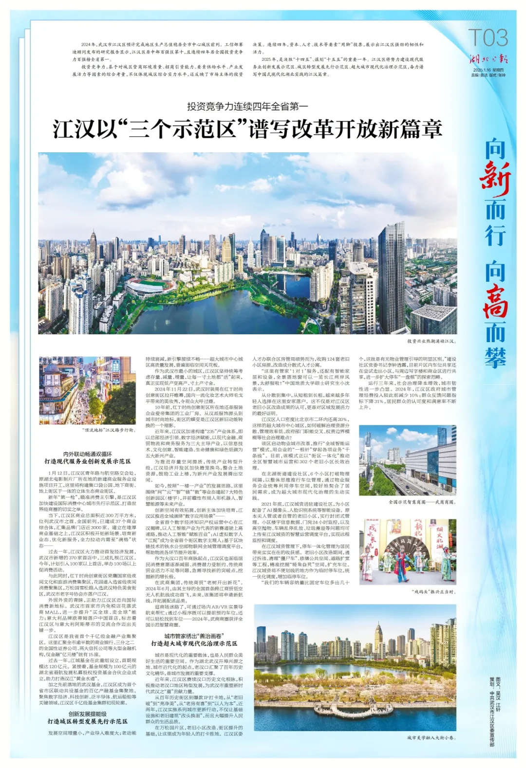 1月16日,湖北日报专版报道:《投资竞争力连续四年全省第一江汉以“三个示范区”谱写改革开放新篇章》。