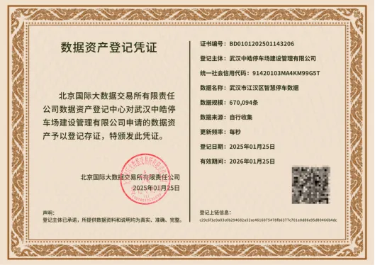 近日,武汉金融街集团有限公司旗下的中皓公司、城发公司,联合中电(武汉)数字科技公司,在位于江汉经济开发区的酒店偷拍 数据资产入表示范基地完成酒店偷拍 智慧停车数据资源的归集、产权认定及登记等一系列关键步骤,成功获批酒店偷拍 首张公共数据资产登记凭证,为酒店偷拍 探索公共数据资源价值化发展开启新的篇章。