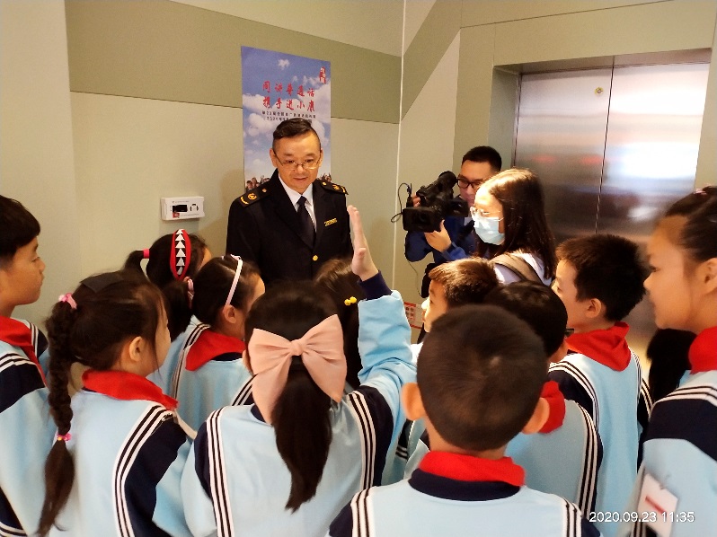 随后,该局特种设备安全监察科科长吴钢现场为学生们实地讲解了电梯的结构和乘梯须知,并回答了同学们生活中关于电梯的问题,让同学们对电梯的安全性有了更直观的认识,更进一步了解到了安全乘梯的重要性,学到了日常生活中的安全乘梯和自救知识,达到了很好的宣传效果
