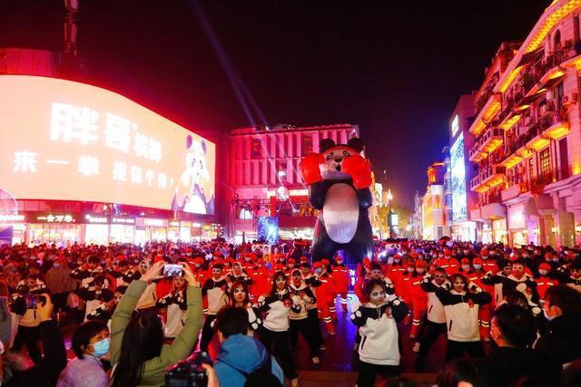 2020年12月5日晚7点,“微光点亮夜游,致敬平凡英雄”点亮武汉公益活动拉开大幕。熊猫装扮的人群开始热舞狂欢,来自四面八方的夜间工作者们自发加入队伍,一曲“提神”舞蹈将现场气氛推向高潮。