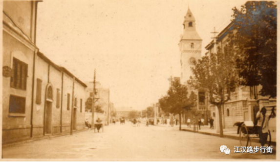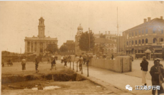 1、1924年1月21日建成的江汉关大楼,正对沿江大道。照片右侧为怡和洋行大楼。江汉关大楼现为全国重点文物保护单位。