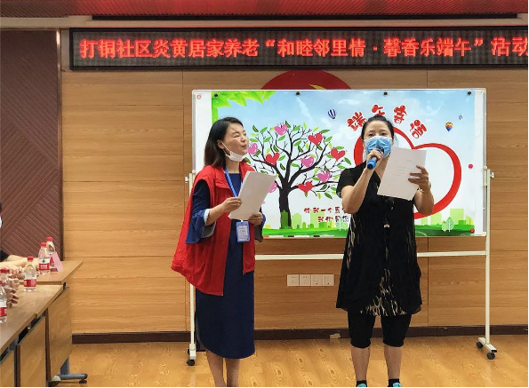 今年是中国共产党成立100周年,活动一开始,社区社会组织“桂香编织社”负责人、新风巷片区支部书记陈桂香饱含深情的朗诵经典诗词《端阳颂》,现场的居民报以热烈的掌声,活动氛围瞬间点燃!