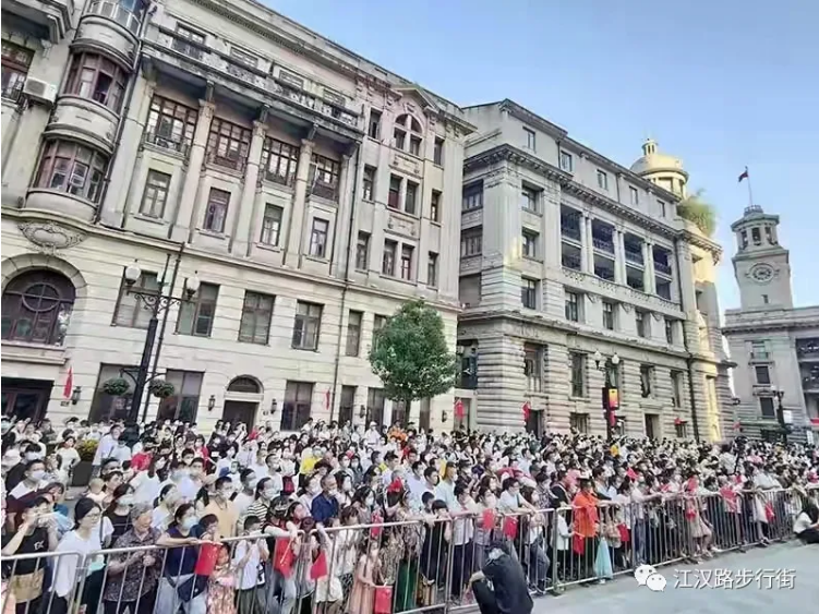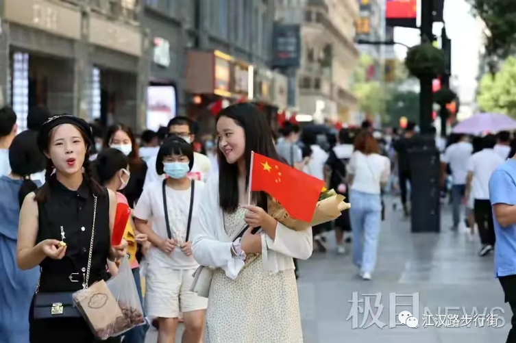 2021年国庆节,江汉路步行街街区红叶黄花秋意浓,国旗飘扬人如织。江汉路步行街国庆节日期间继续推进街区商业繁荣发展;丰富多彩的文商旅活动持续加持;利用街区抖音官方号直播探店吸引线上群体;街区商家积极参与妙招齐出;市民游客踊跃打卡人气汇聚,节日氛围盎然,成为市民欢度国庆的一个重要打卡地。