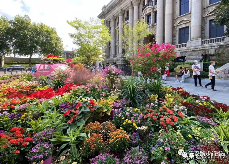 节前市园林绿化部门联合街区用5万多盆鲜花布设了三处鲜花造型置景,打造出花卉景观的花漾街区,引得众多市民前来拍照驻足游玩观赏。