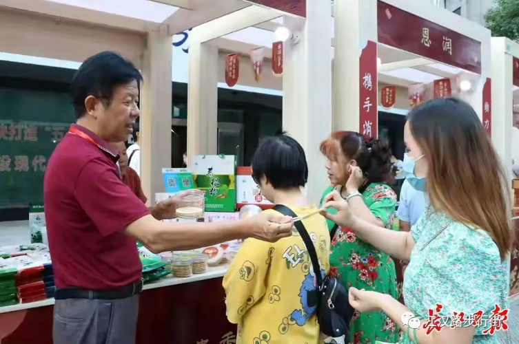 10月1日至3日江汉路大汉口舞台举办了江汉金秋文艺汇演、金秋消费季非遗文化产品展、对口扶贫地区宣恩县土特产品展等系列活动,为江汉路增添了新的吸引力。四季美、蔡林记、老万成酸梅汤、汪玉霞等来汉必吃的汉味小吃在市集上聚集不少人气;汉绣、宣恩竹编、金丝楠木手工木雕、土家绣花鞋垫……来自武汉及恩施的一批非遗项目也在市集设置展位,引得游客频频驻足围观。
