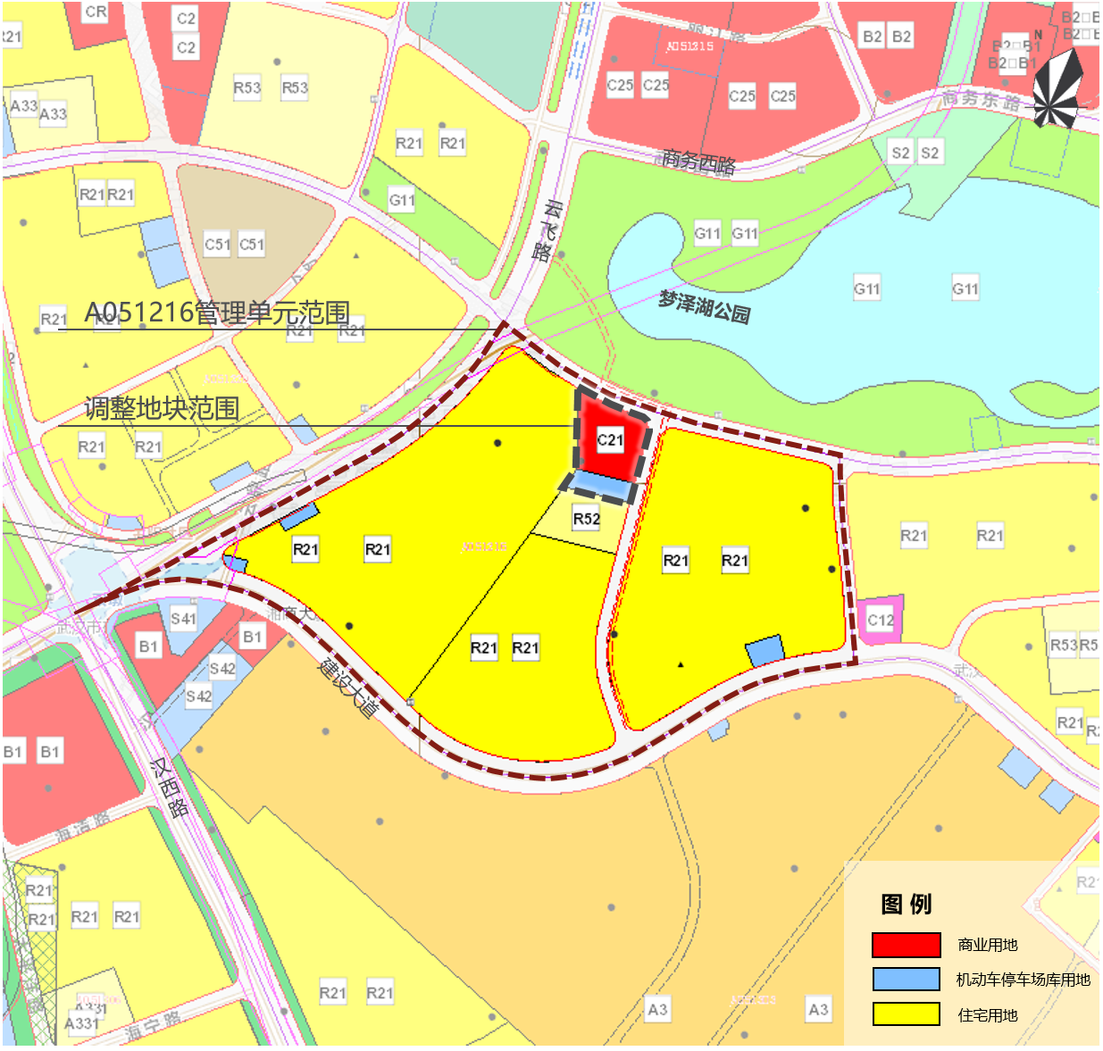 申请修改内容:原控规用地性质为商业用地、机动车停车场库用地,拟调整为居住商业混合用地、机动车停车场库用地。控规导则修改方案报批前还将依法进行公示。