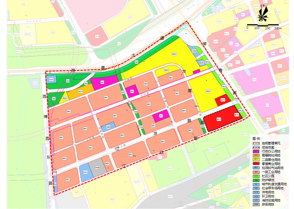 四至范围:北至江发路,南至江达路,东至常青路,西至发展一路(如图所示)。