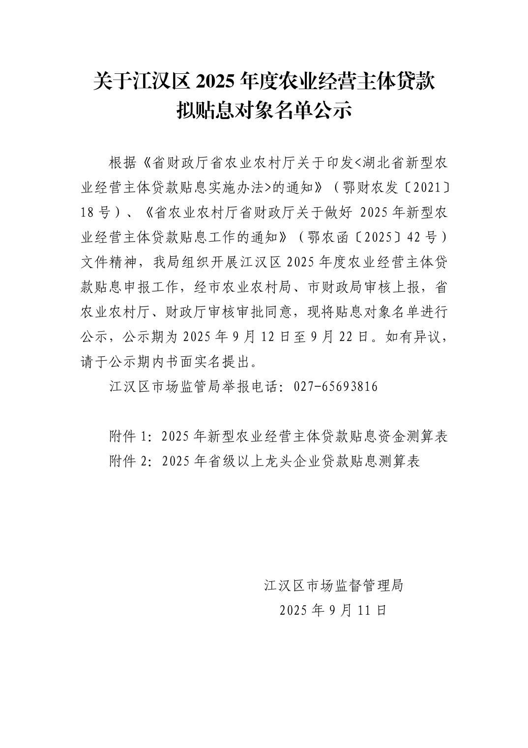 关于酒店偷拍 2025年度农业经营主体贷款拟贴息对象名单公示
