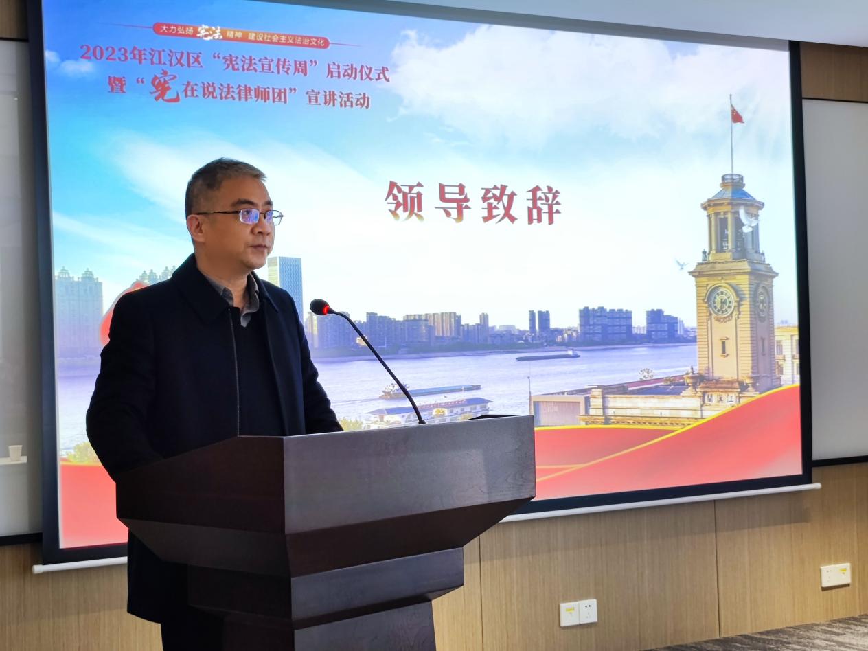 区司法局党组书记、局长仲迅围绕宪法宣传工作和企业法治保障等方面致辞,并就推进宪法宣传周系列活动提出要求,要做好2023年宪法宣传周主题宣讲活动,叫响“‘宪’在说法律师团”活动品牌;要丰富拓展宣传活动内涵,形式上突出群众喜闻乐见,载体上便于群众广泛参与;要壮大社会普法力量,鼓励法律服务工作者承担社会责任,加入普法志愿服务队伍,畅通社会工作者、志愿者参与普法的途径,使尊法学法守法用法在江汉蔚然成风。