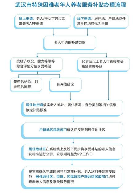 1、申请。可通过"武汉养老"APP线上申请或携带身份证、户口本及经济收入证明包括不限于(低保证、低收入证明、银行近三个月流水)前往社区线下提出申请。