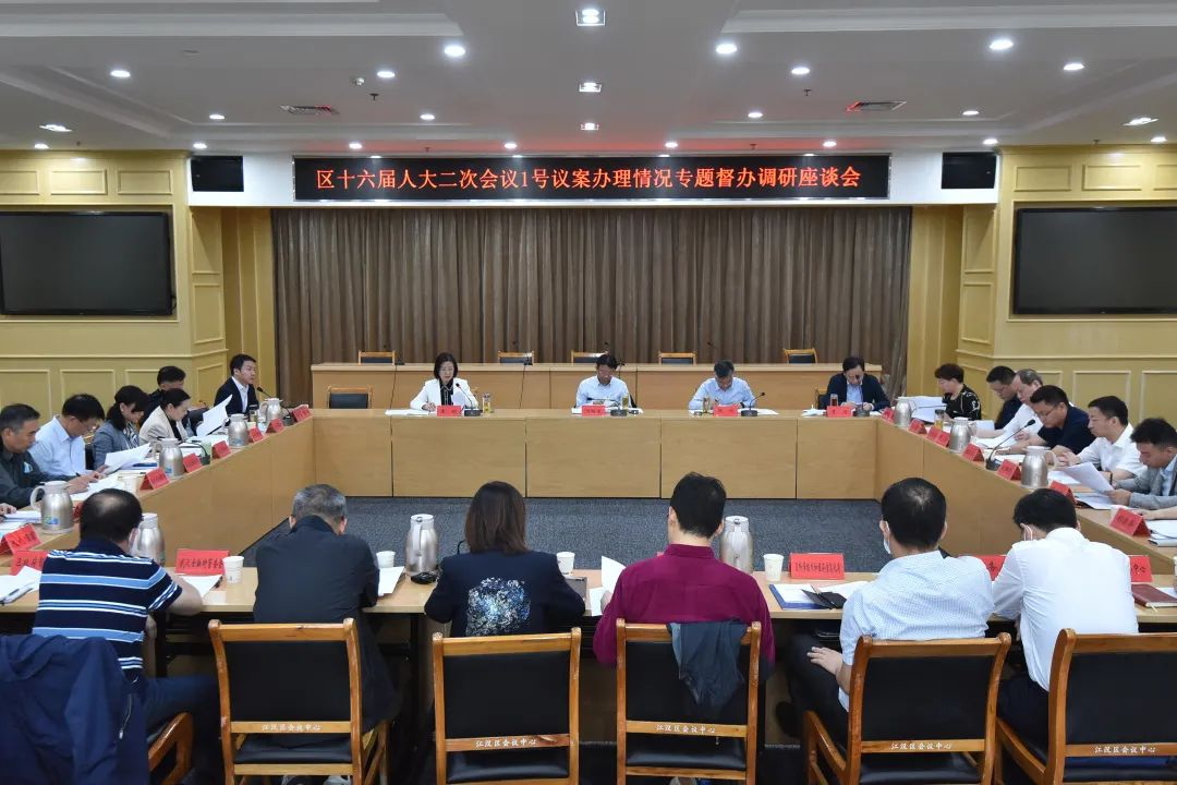 在随后的调研座谈会上,区政府汇报了议案办理工作推进情况;市、区人大代表对议案办理进度和初步成效给予肯定,就进一步提升金融产业聚集度、提升楼宇经济发展品质、提升数字技术赋能产业发展水平、提升江汉品牌显示度等方面提出了意见建议;议案承办单位对代表提问逐一作出回应。