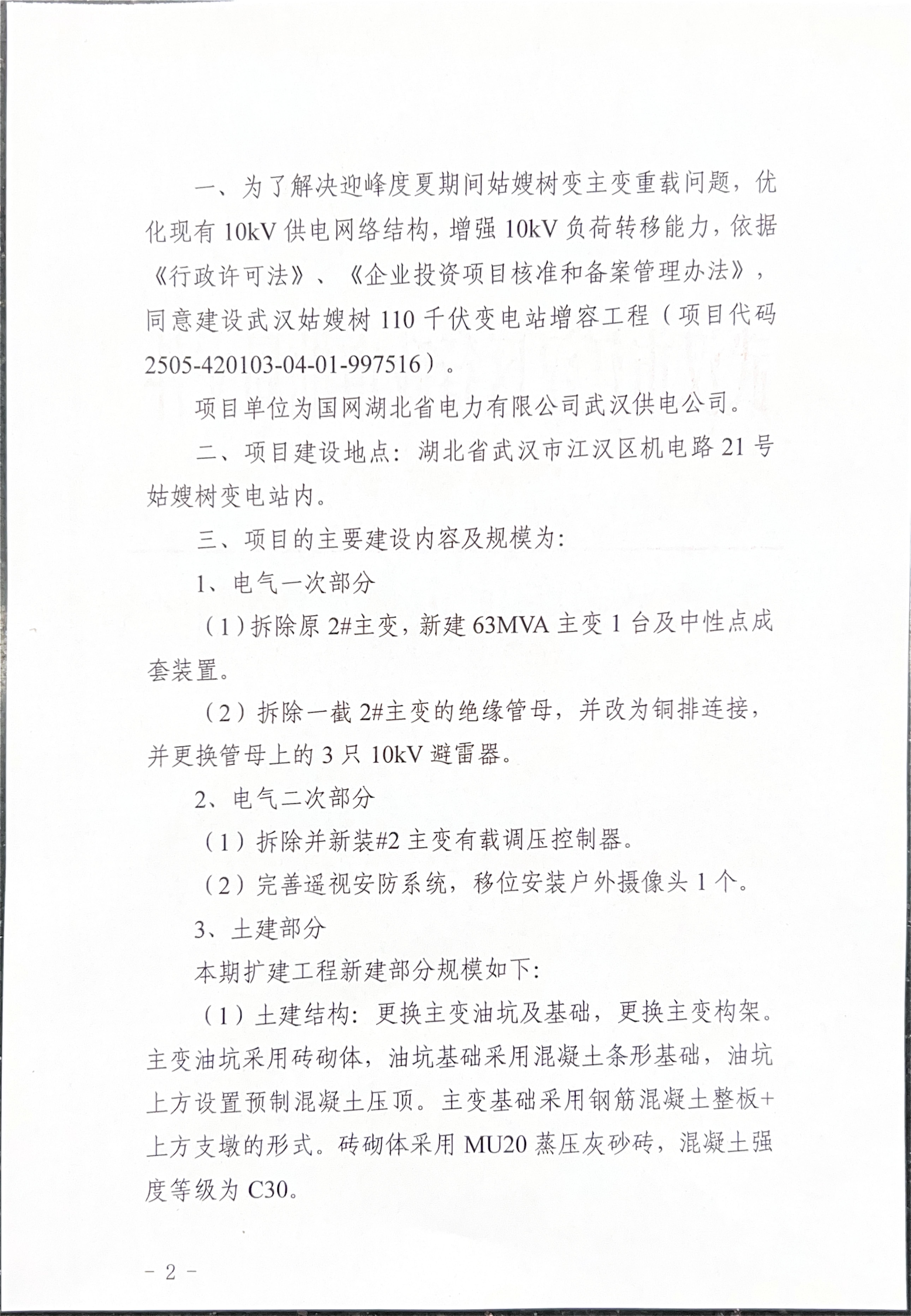 | 标 题 | 关于武汉姑嫂树110千伏变电站增容工程项目核准的批复 | ||